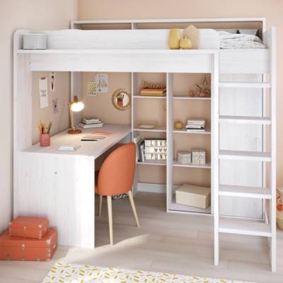 Le rose mari� � teintes neutres comme dans cette chambre. Notre lit mezzanine propose à la fois un espace où dormir, travailler et ranger pour s'adapter au plus près des moments de vie de vos enfants. Il ne prend pas de place au sol et permet ainsi d'agencer la pièce en l'optimisant au maximum. Nous vous proposons une large choix de lits pour enfants avec mezzanine ou avec bureau intégré. Lit mezzanine avec bureau, superposé en bois, avec 2 places, lit en.